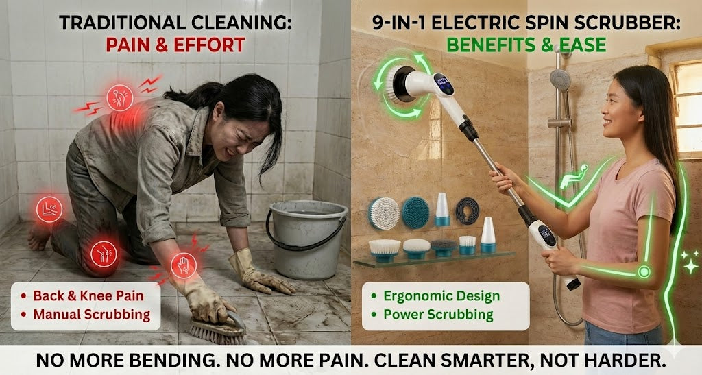 I discovered the 9-in-1 Electric Spin Scrubber almost by accident. Late one night, scrolling on my phone with an ice pack on my back, I saw a demonstration video. At first, I was skeptical. I had already wasted money on products that promised miracles and delivered nothing. But something about the rotating brush heads, the extension handle, and the fact that it claimed to reduce physical strain made me pause. I decided to try—more out of desperation than hope.